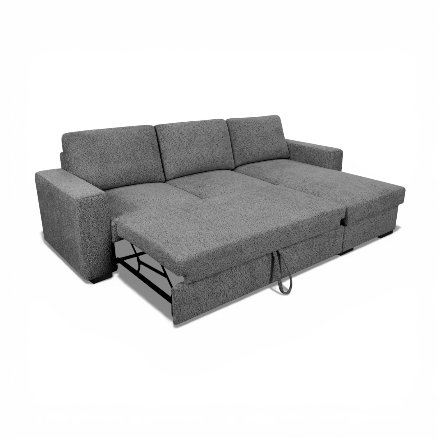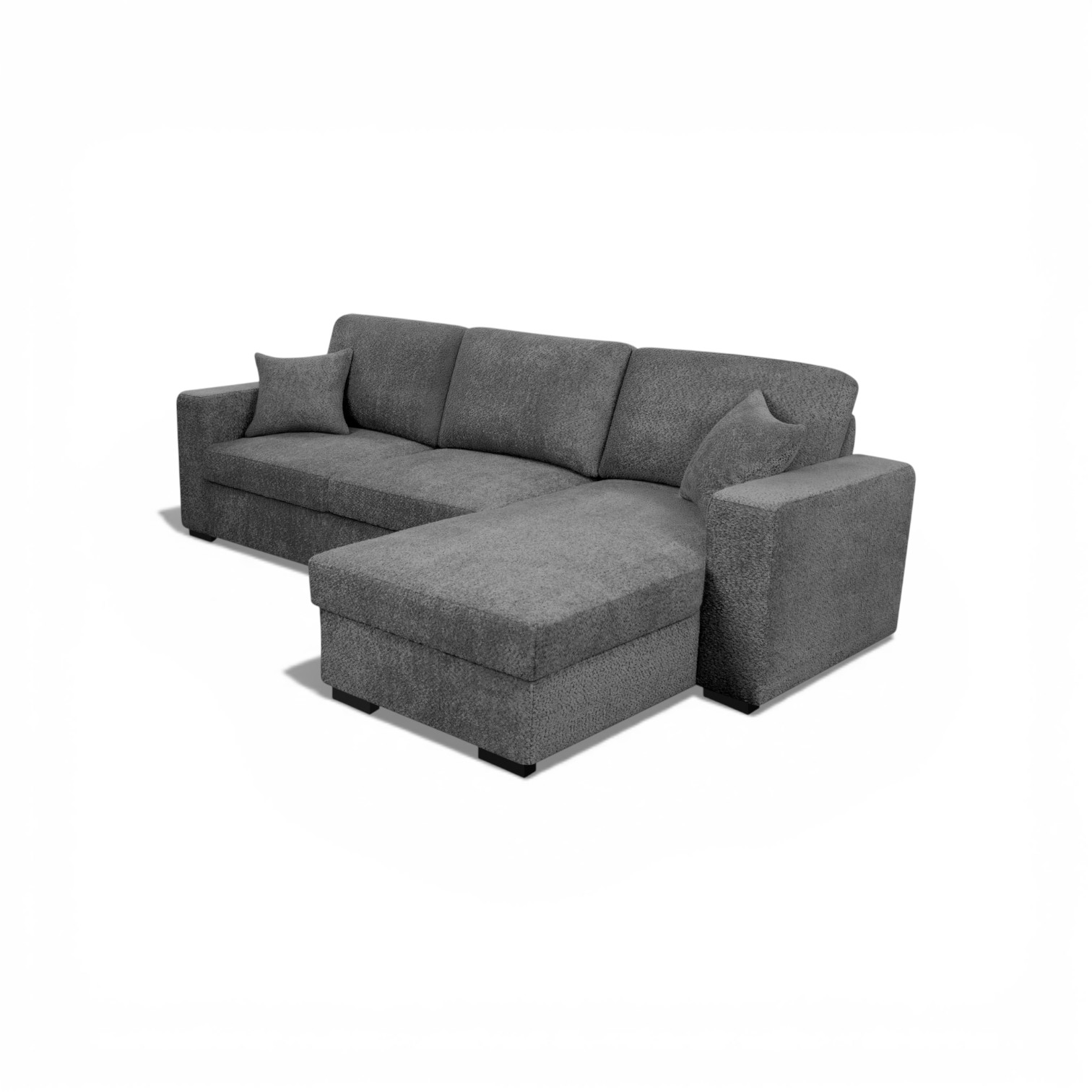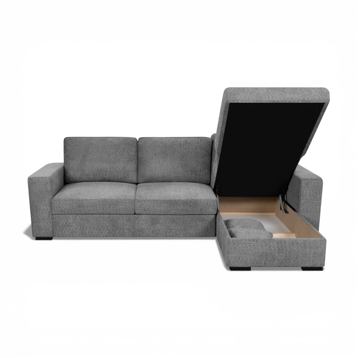 Längsbäddad funktion gör om soffan snabbt till en bekväm gästsäng när du behöver det. Smart förvaring i schäslongdelen ger gott om plats för täcken, kuddar och annat du vill ha nära till hands.