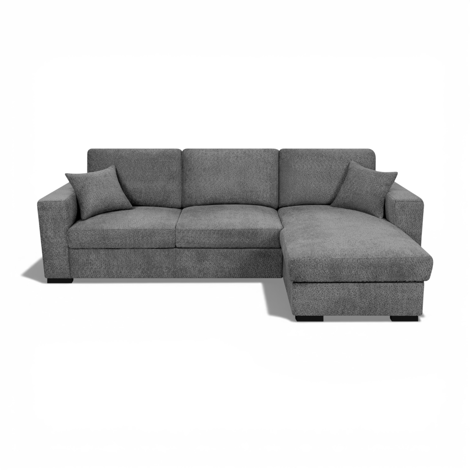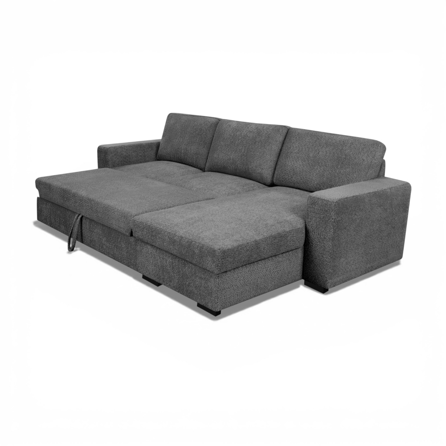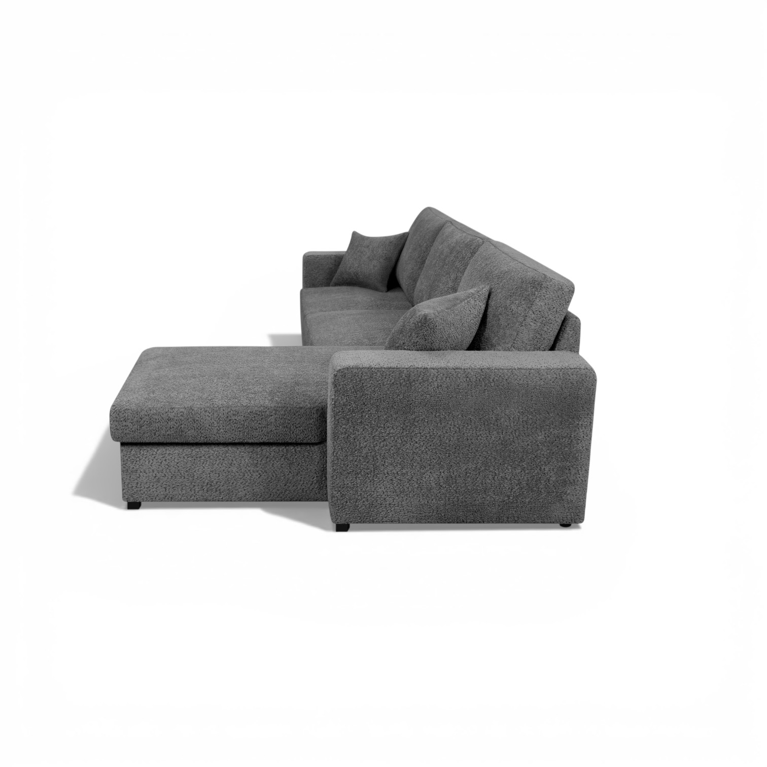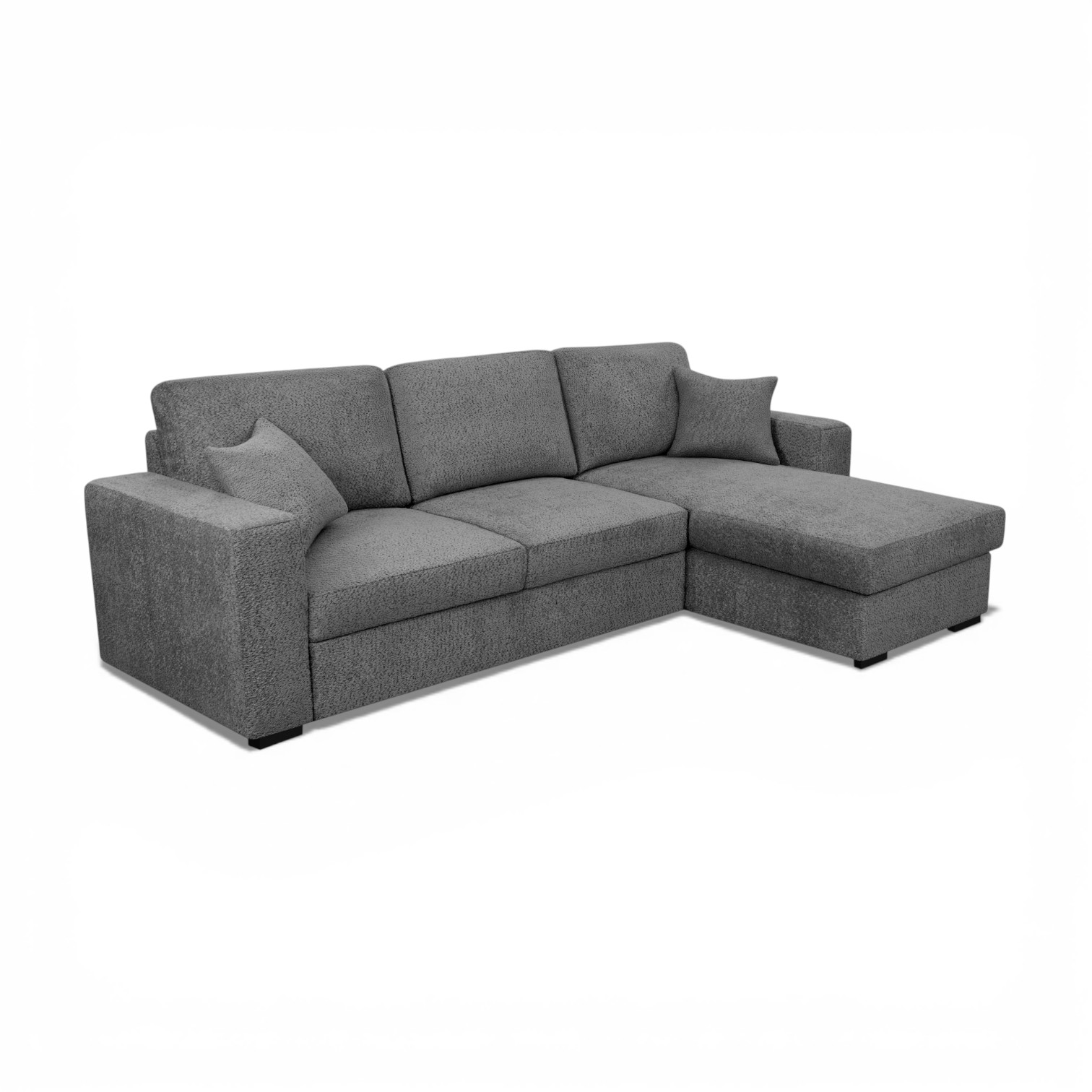 Längsbäddad funktion gör om soffan snabbt till en bekväm gästsäng när du behöver det. Smart förvaring i schäslongdelen ger gott om plats för täcken, kuddar och annat du vill ha nära till hands.