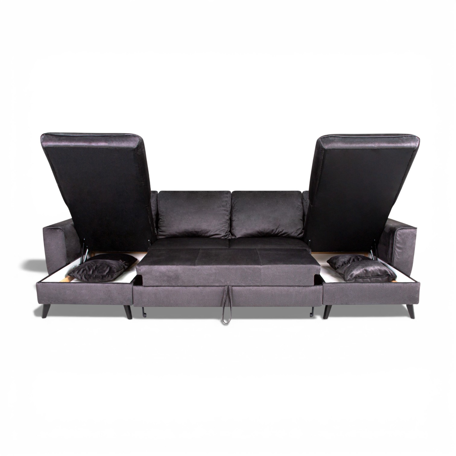 Sovfunktionen förvandlar snabbt soffan till en bekväm gästsäng, medan smart förvaring håller täcken och kuddar snyggt organiserade. De höga benen underlättar vid städning och ger soffan det där lätta, luftiga uttrycket som kännetecknar skandinavisk design.